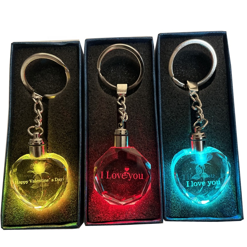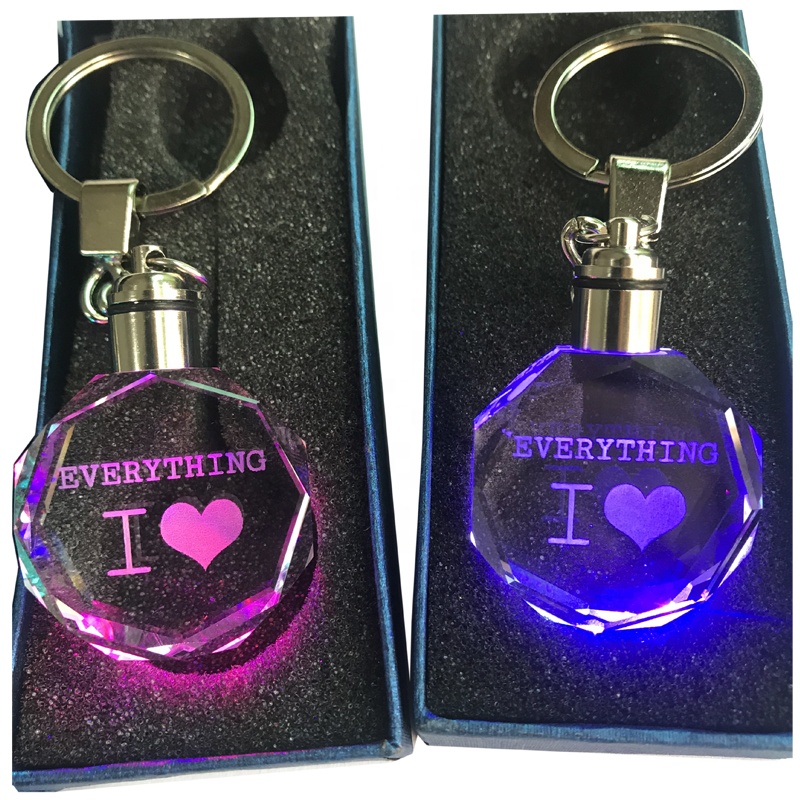 Bán buôn trống LED móc khóa pha lê thăng hoa biểu tượng tùy chỉnh llaveros 3D khắc trái tim khoảng trống Móc Chìa Khóa thủy tinh cho các phụ kiện